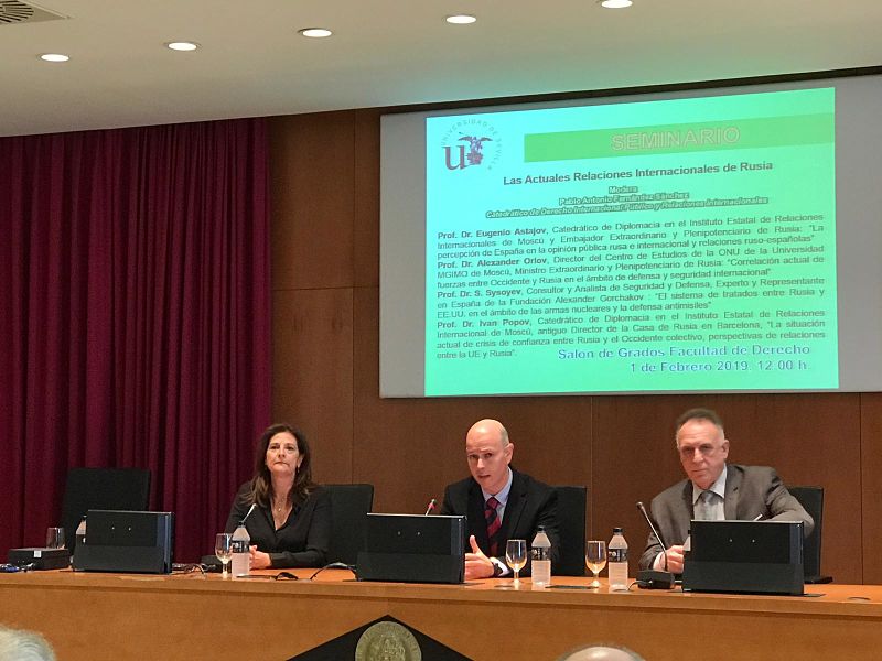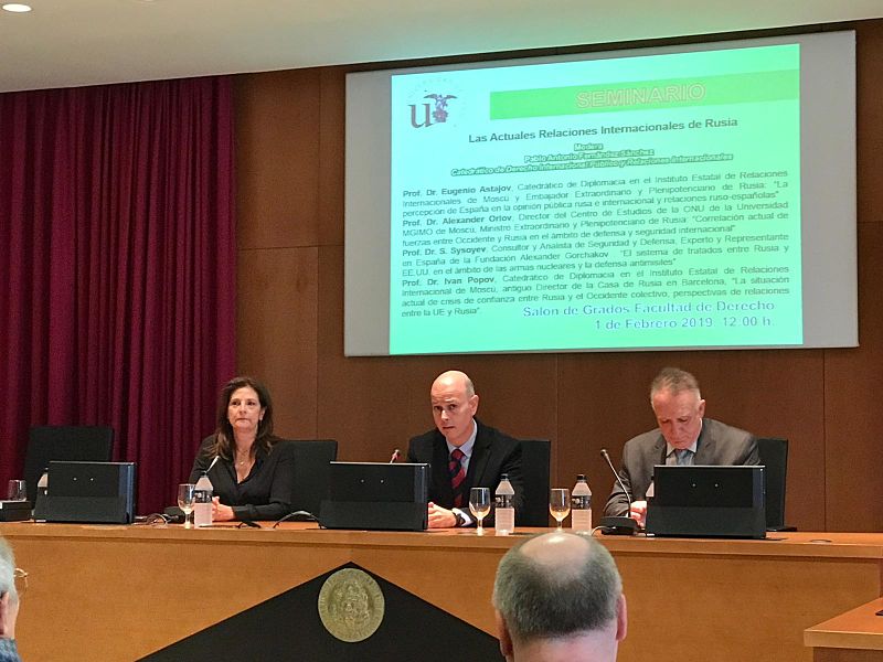 El pasado 1 de Febrero se ofreció en la Facultad de Derecho de la Universidad de Sevilla el seminario «Las actuales relaciones internacionales de Rusia», moderado por el profesor Pablo Antonio Fernández Sánchez, catedrático de Derecho Internacional Público y Relaciones Internacionales. Tendrá lugar en el salón de grados de dicho centro y que contó con la presencia de Dña. Esther Morell, Consul honorario de la Federación Rusa en Andalucía.